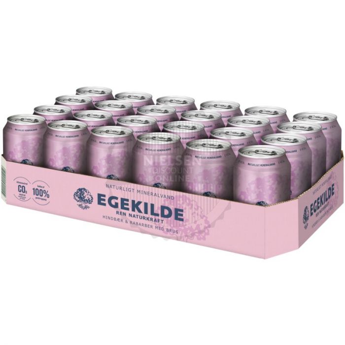 Egekilde Himbeere & Rhabarber er en forfriskende mousserende drik lavet med hindbær og rabarber smag. Den kommer i en pakke med 24 flasker, hver på 330 ml.
