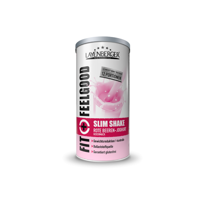 With our Layenberger Fit + Feelgood Slim Shake Red Berries Yoghurt it is easy to replace one or two of the three daily meals. Simply prepare 33g powder with 200ml semi skimmed milk (1.5% fat) in a shaker - and ready is your delicious meal with only 213kcal. Thanks to their high-quality composition, our gluten-free Fit + Feelgood products are a complete meal replacement and provide you with a balanced and reliable supply of everything your body needs. As a source of fibre, one portion also ensures a long-lasting saturation. On the way to your weight goal, please make sure to drink enough - at least two liters of calorie-free or low-calorie liquid per day!