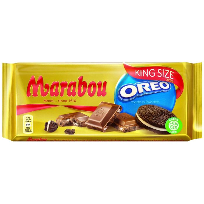 Marabou Oreo 220g er en lækker kombination af glat Marabou chokolade med sprøde Oreo-cookie-stykker. Det er den perfekte godbid til enhver chokoladeelsker!