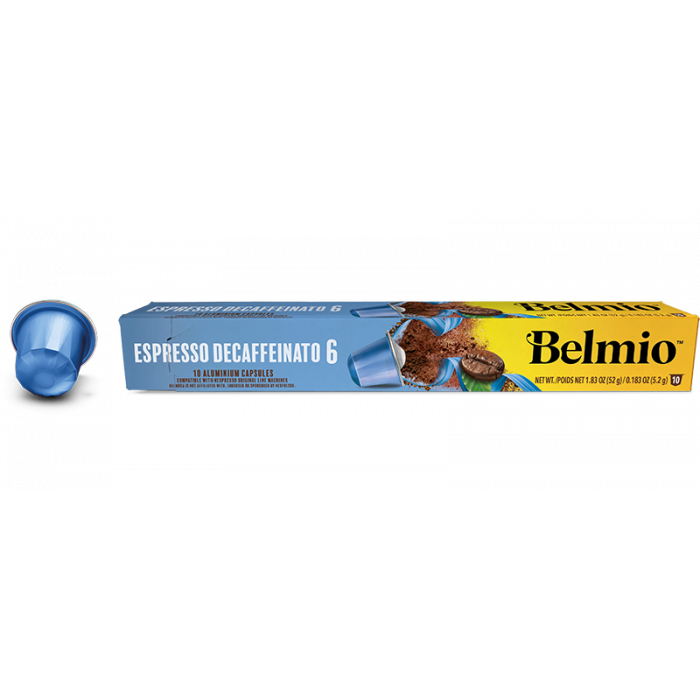 Denne Belmio Espresso Decaffeinato er en koffeinfri kaffe mulighed til Nespresso-maskiner. Hver pakke indeholder 10 kapsler.
